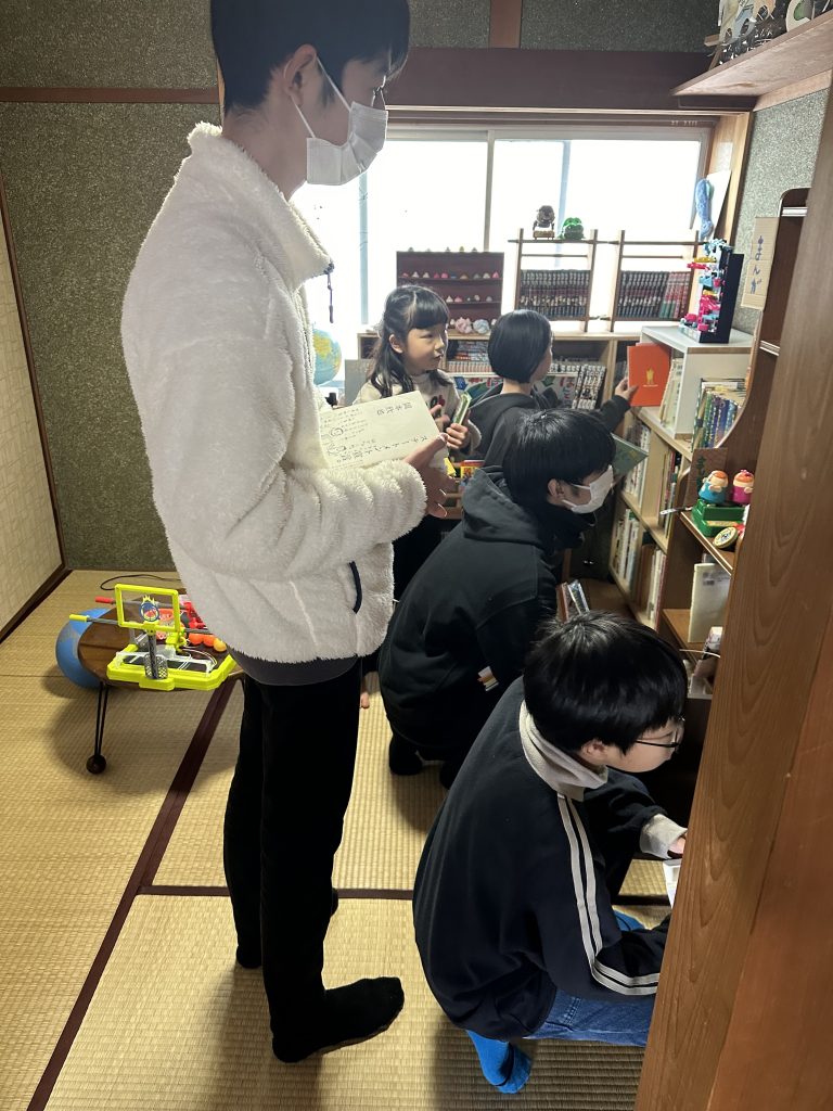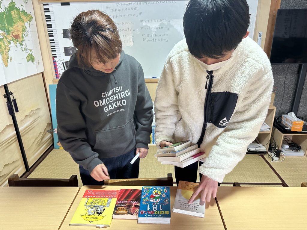5限目は、図書室の本を手に取るようなゲームをしました。